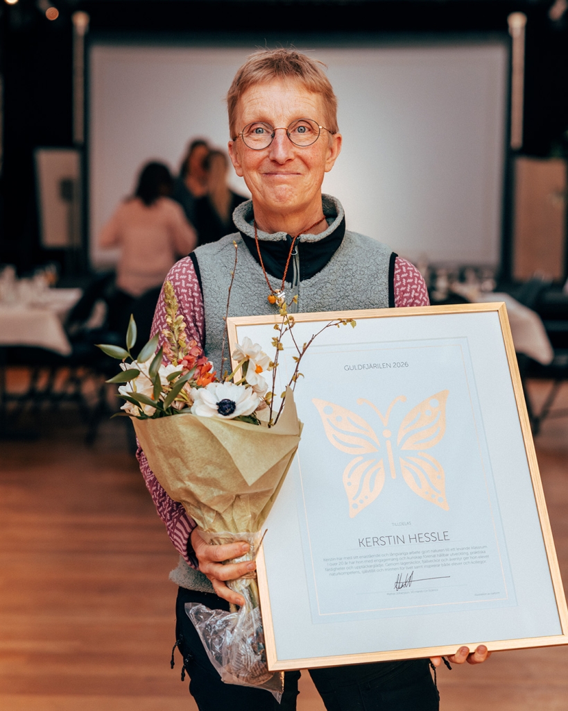 Kerstin Hessle blev tilldelad årets Guldfjärilspris 2026! Förutom äran, premierades hon med 50 000 kronor. Stort grattis från oss!