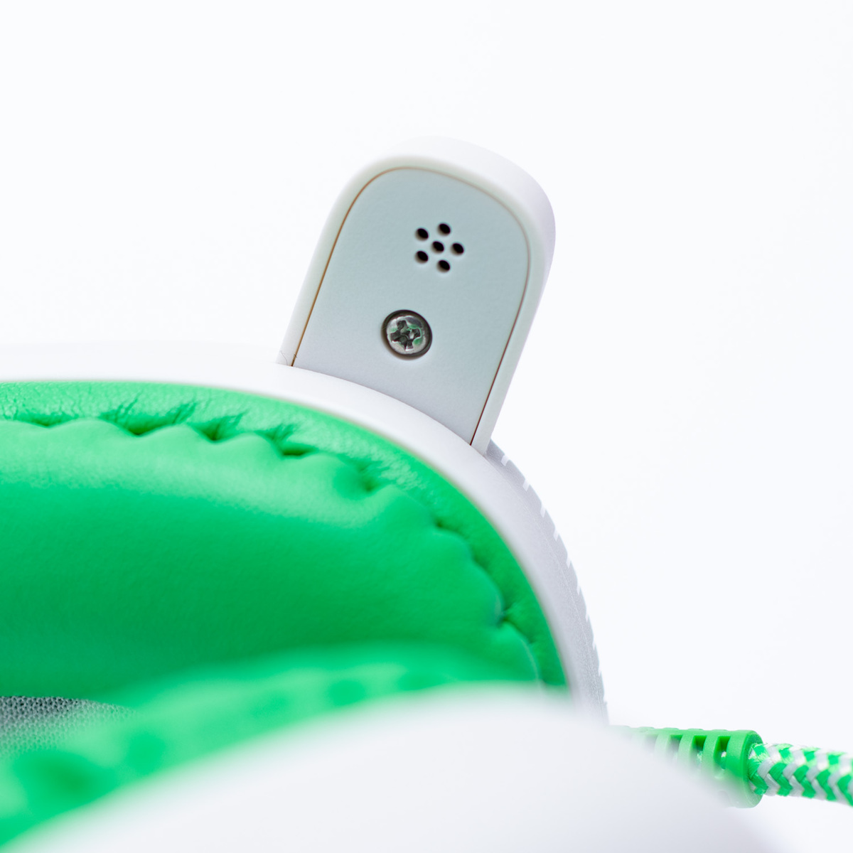 15 hörlurar samt förvaringslåda. Headset speciellt utformade för yngre barn 4-9 år. Kan användas som både hörlur och headset med mikrofon. Högtalarna är begränsade till en ljudnivå på 85 dB. Lätt, mjuk, vadderad konstruktion för längre och behaglig användning. Bra komfort, passform och slitstark design med vadderade öronkåpor. Tuggresistent, lång kabel med förstärkta kevlarinfästningar. Brusreducerande mikrofon. Ljudreducerande öronkåpor med minimalt ljudläckage. Lätt att rengöra. Justerbara. Från 4 år.