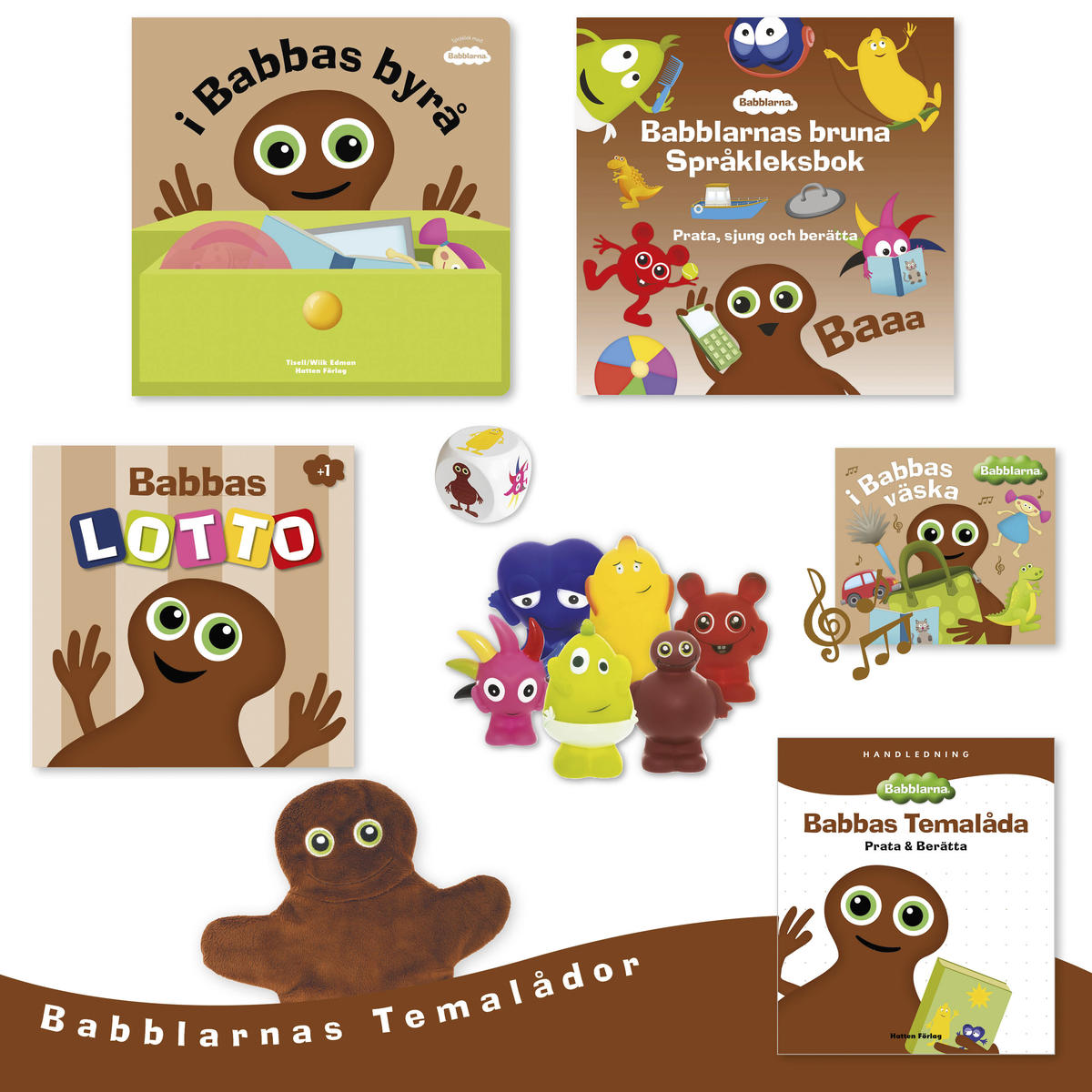 Babblarnas temalådor är inspirerande paket för språklek på ett specifikt tema förankrat i förskolans läroplan. I Babbas språklåda är temat prata och berätta. Materialet fokuserar på ord, ordlekar, ramsor, berättelser och sagor. Lådan innehåller en stor kartongbok ”I Babbas byrå”, en Språkleksbok med härliga uppslag för språkutvecklande aktiviteter, en sång med tillhörande sånglek, ett lottospel, Babba som handdocka och Babblarna plastfigurer som även fungerar som spelpjäser med medföljande tärning. Materialet levereras med en lättläst och tydlig handledning.