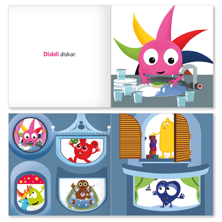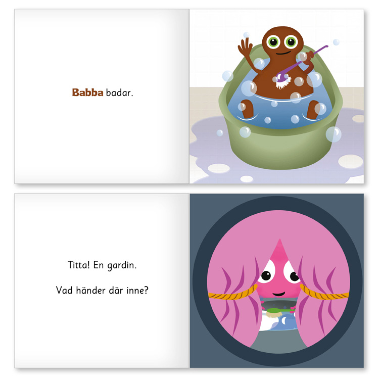 Format 24×24 cm, sidor av kartong med rundade hörn.
