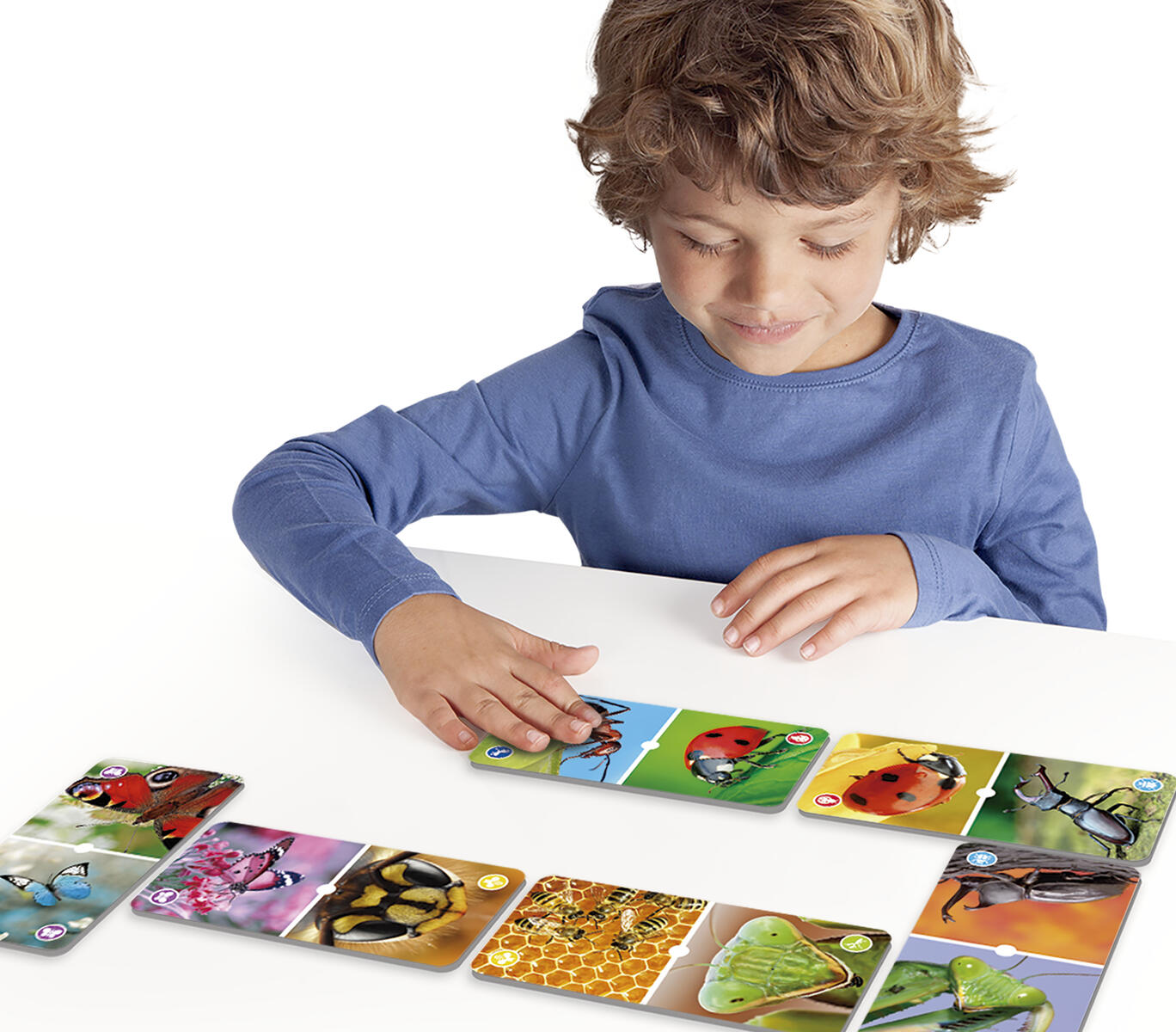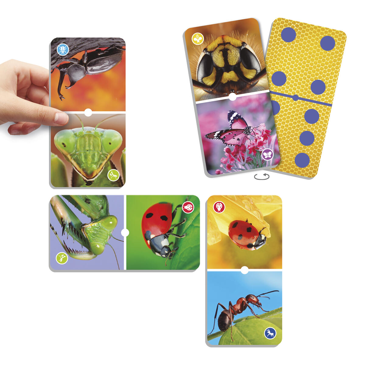 28 kort och 15 marker. Ett fantastiskt domino där insekternas vackra värld visas på stora fina bilder. Går att spela med insektsfamiljer eller med antal. Ingående råvara FSC-märkt. PVC-fri. Från 3 år.