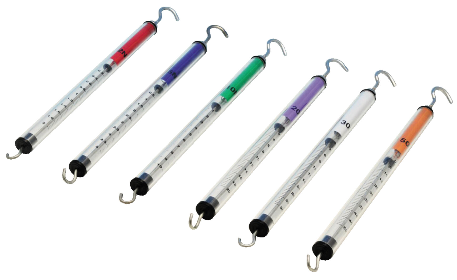 Fjädervåg 0-5 N, blå delning 0,1 N, längd 29 cm.