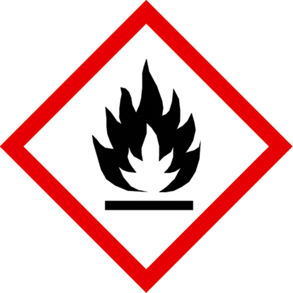 Varningsetikett GHS02 – Brandfarlig. 4 etiketter. Självhäftande. Svart/röd och vit. Mått: 100...
