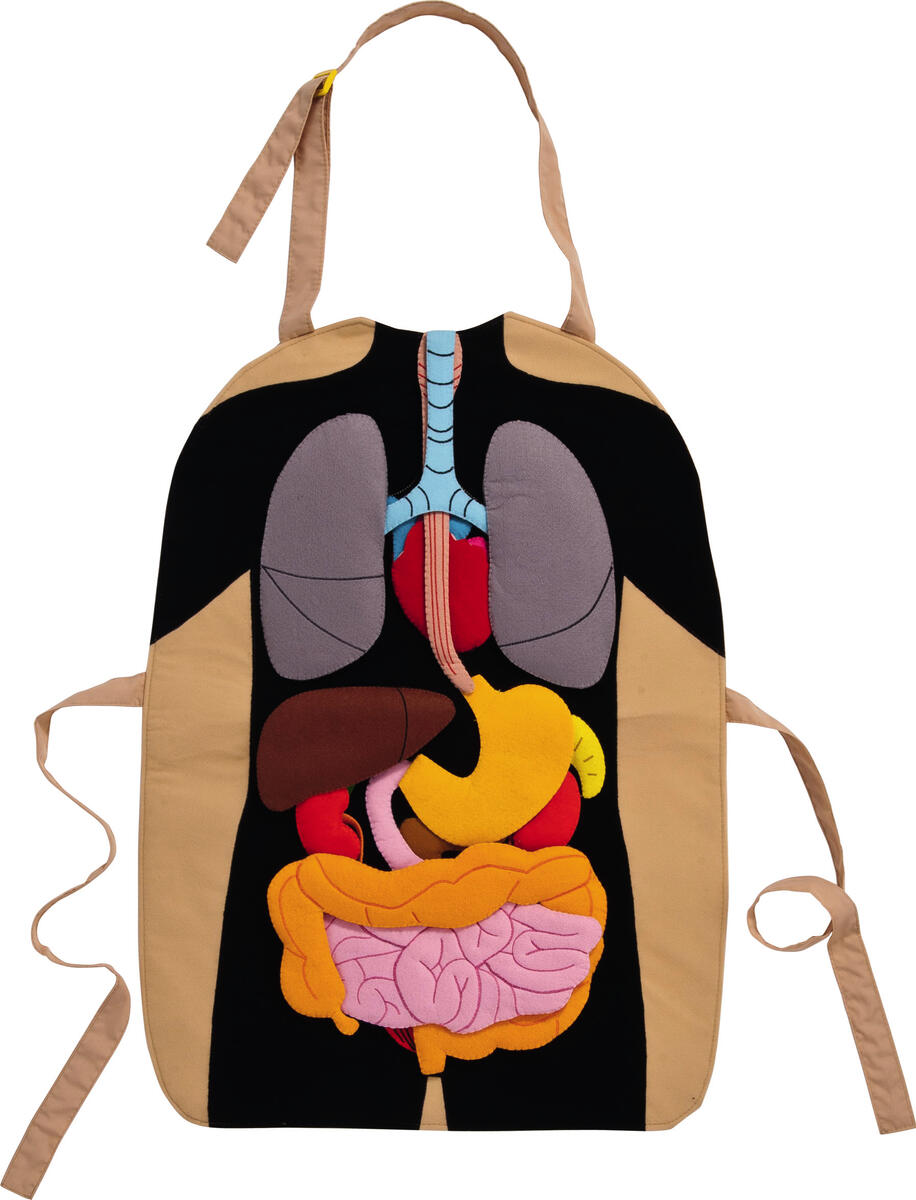 Ett förkläde med kroppens insida visat på ett illustrativt och pedagogiskt sätt. Organen är försedda med kardborre så att man kan ta av och på dem när man vill lära sig mer om eller visa specifika delar av kroppen. Innehåller förkläde och 15 organ. Från 3 år.