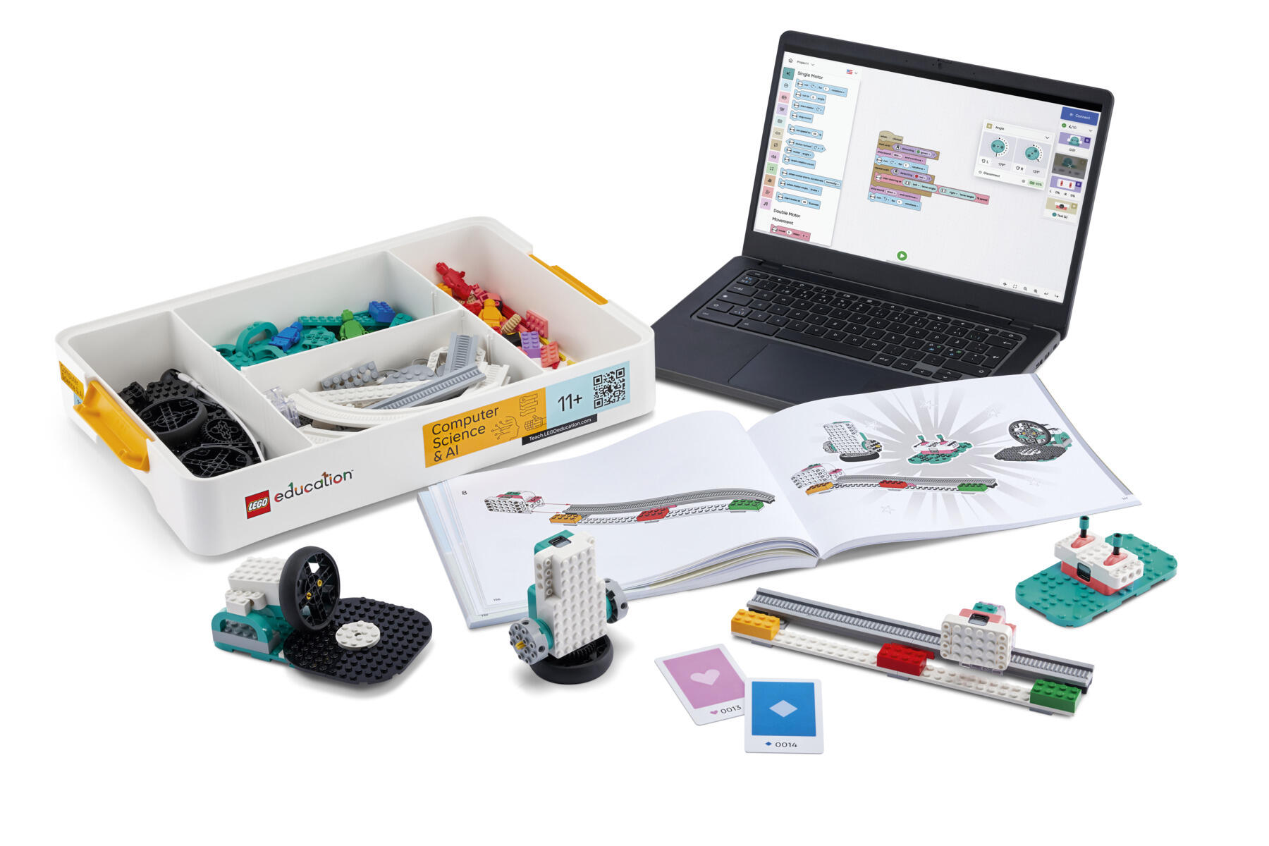 Detta material ger elever praktisk erfarenhet av programmering och AI, oavsett tidigare kunskaper. Varje set innehåller 379 LEGO®-klossar, dubbelmotor, singelmotor, färgsensor, kontrollenhet, två anslutningskort och bygginstruktioner – anpassat för fyra elever att arbeta tillsammans.
