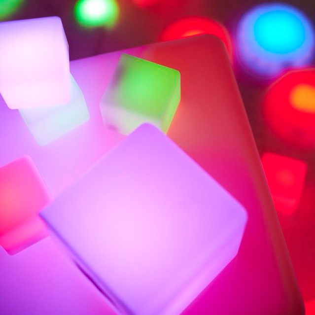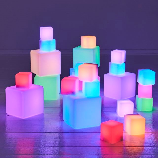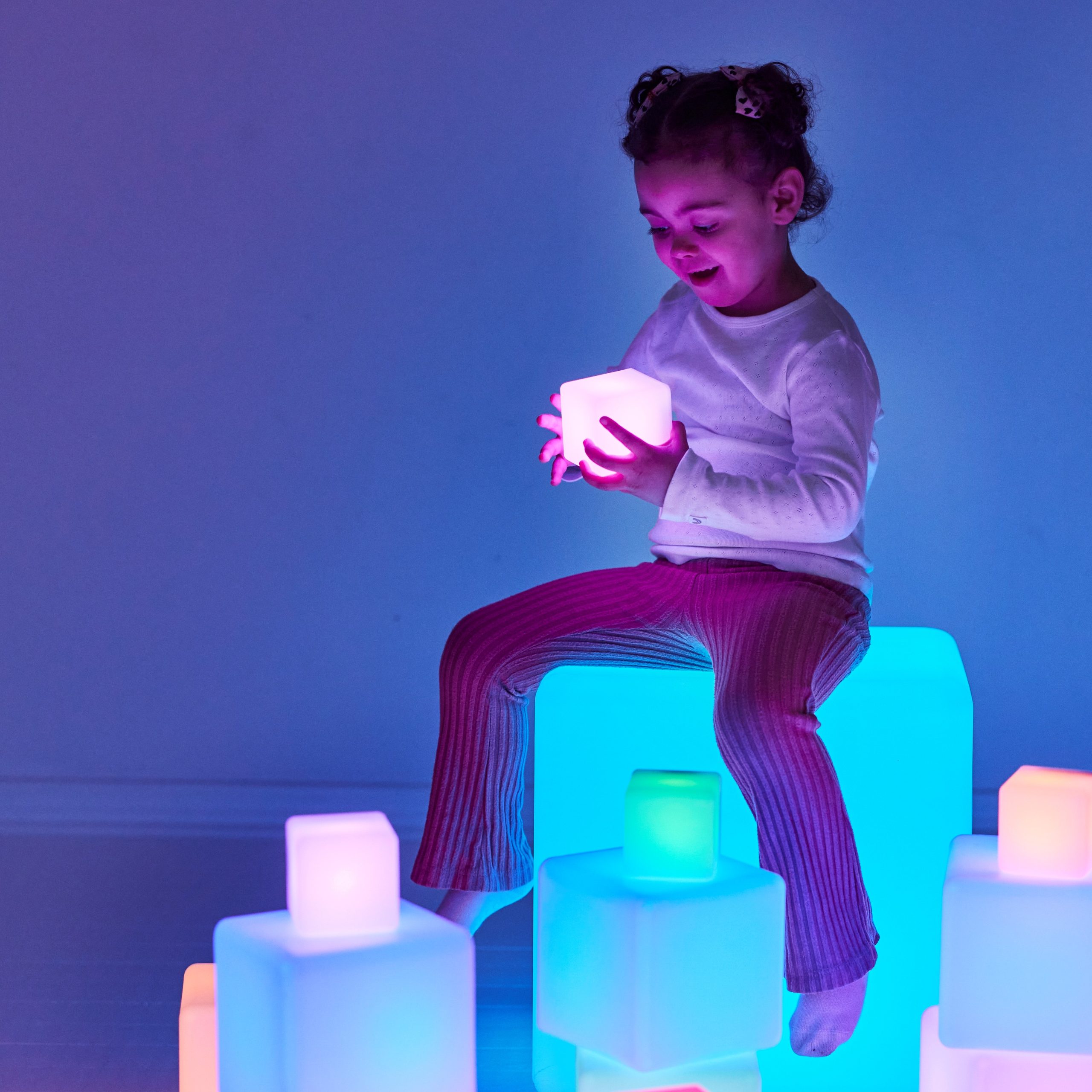 12 stycken fantastiska kuber som ändrar färg när man vänder på dem. Träna sekvenser, bygg, och upplev det dova ljuset från kubernas inre.