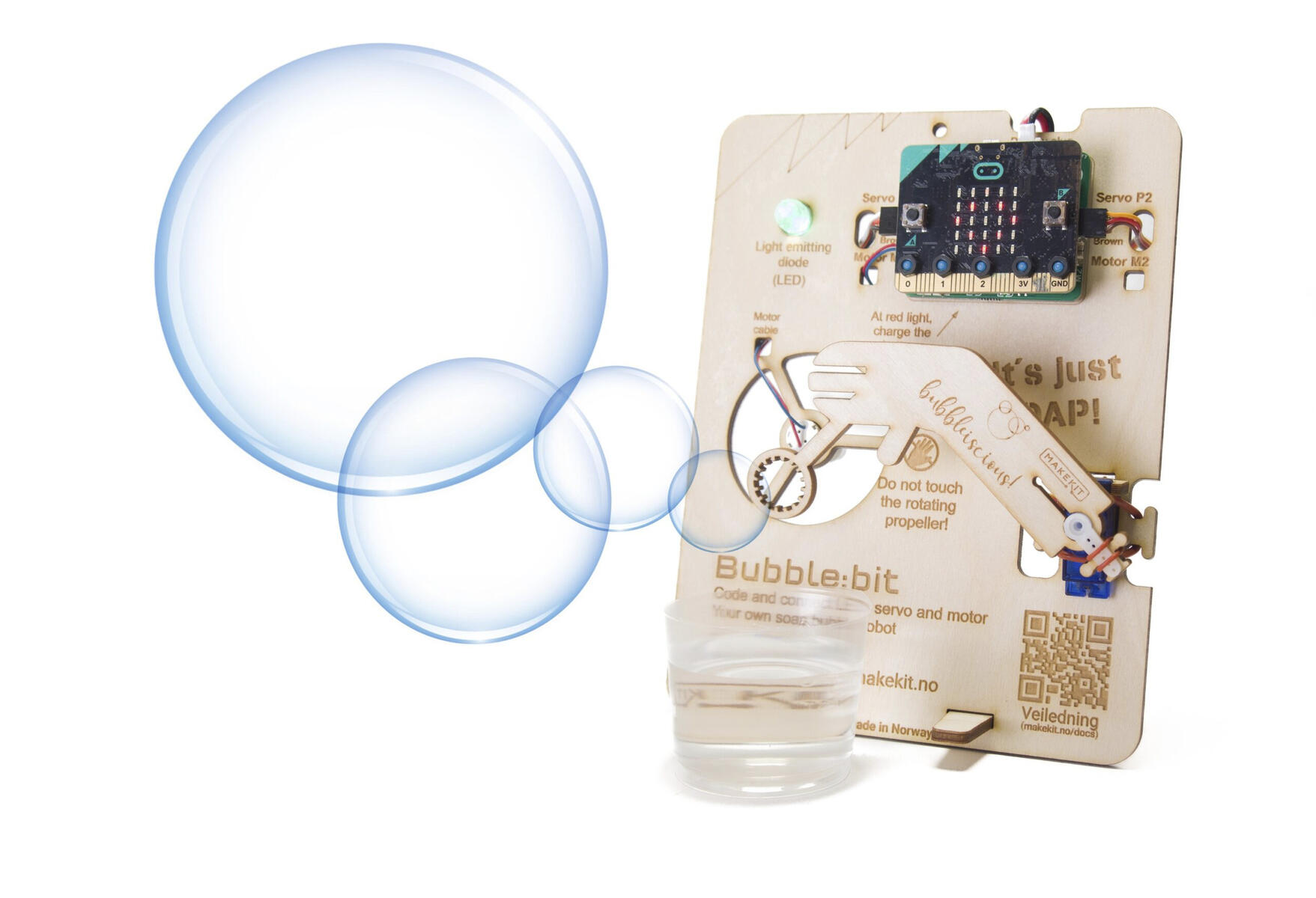Ett klassrumsvänligt set med tillbehör till Micro:bit. Kan användas oavsett om du har tillgång till 3D-skrivare och laserskärare eller mer traditionella verktyg som sågar, knivar och saxar. Programmera med MakeCode Blocks, Javascript eller Python eller ladda ner ett färdigt program. Innehåll: 10 Bubbel:bit, 10 Wheel:bit, låda för förvaring, snabbladdare för flera batterier, extra propellrar, servo, lysdioder och motorer. Rekommenderat antal Micro:bit: 10. Vill man använda funktionen fjärrstyrning krävs 20. OBS! Ingår ej, köpes separat. Från 11 år.