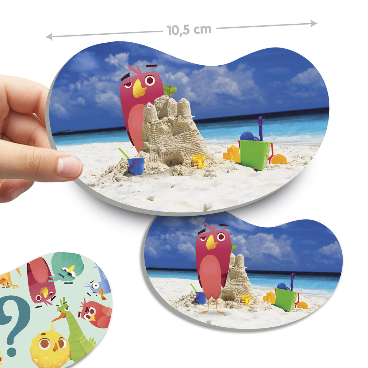 Ett memory där rumsuppfattning och lägesord tränas, t.ex. framför/bakom, inuti/utanför, höger/vänster och nära/långt borta.