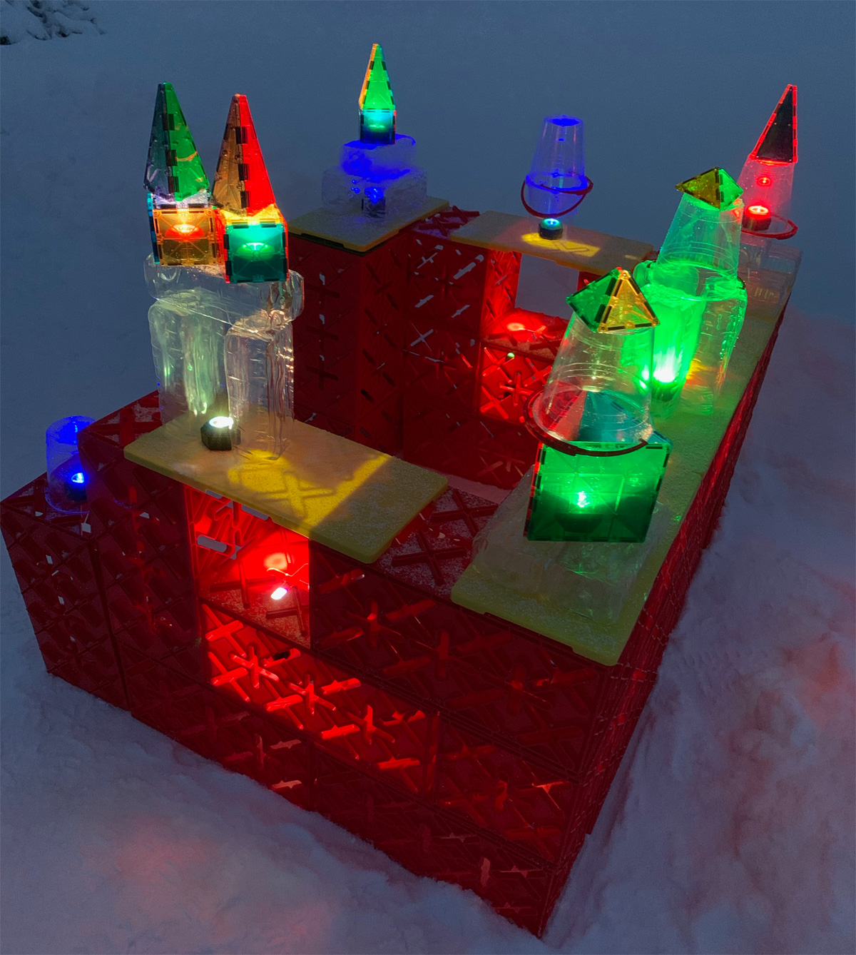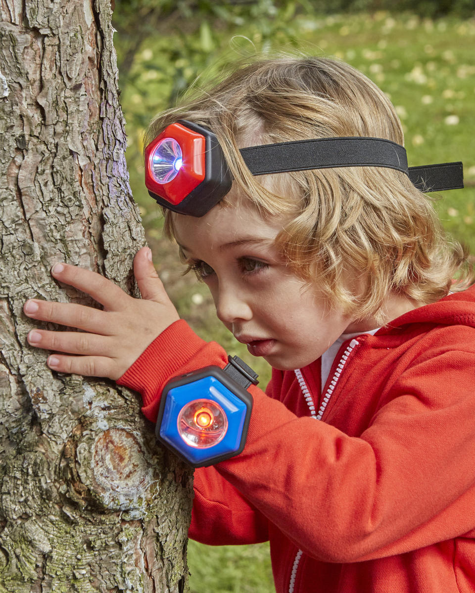 • I undersökande syfte där man behöver ha händerna fria. Fäst på huvud eller handled med medföljande band. Experimentera med färgblandning och skuggbildning.