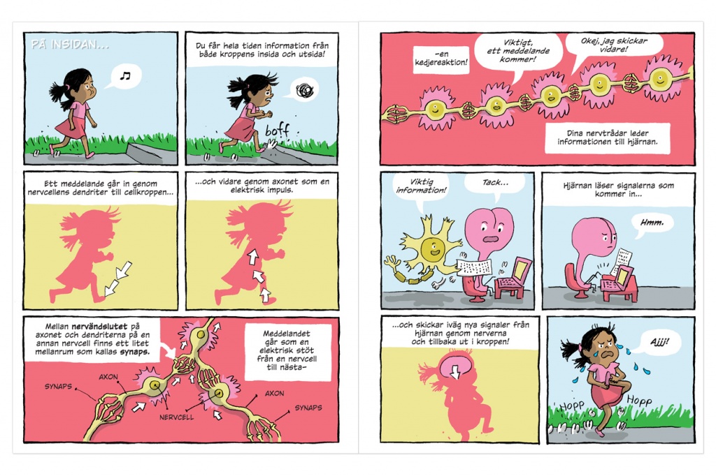 Naturens byggstenar är en ny bokserie med tydliga illustrationer ritade i serieform. De färgglada bilderna gör det roligt att lära sig om hur kroppen är byggd och hur den fungerar. Böckernas enkla och humoristiska språk stimulerar läslusten och gör varje sida till en spännande resa bland celler, muskler och olika kroppsdelar.
