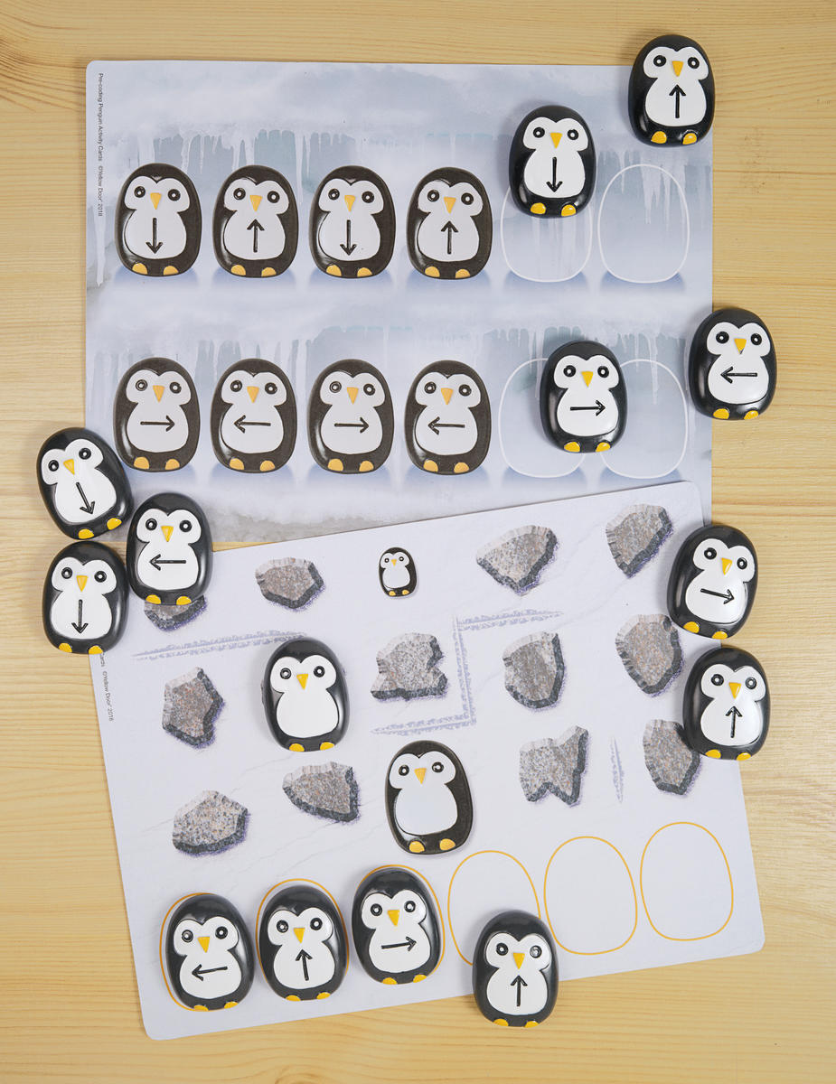 Utvecklar tidiga färdigheter inom programmering. Setet innehåller stenar föreställande pingviner med pilar i olika riktning, samt aktivitetskort. Träna sekvensering, logiskt tänkande, riktnings- och positionsspråk samt problemlösning. Både pingviner och aktivitetskort är tillverkade i slitstarka material och tål att barnen arbetar med dem utomhus. Innehåller 18 pingviner och 16 färgglada kort. Från 3 år.