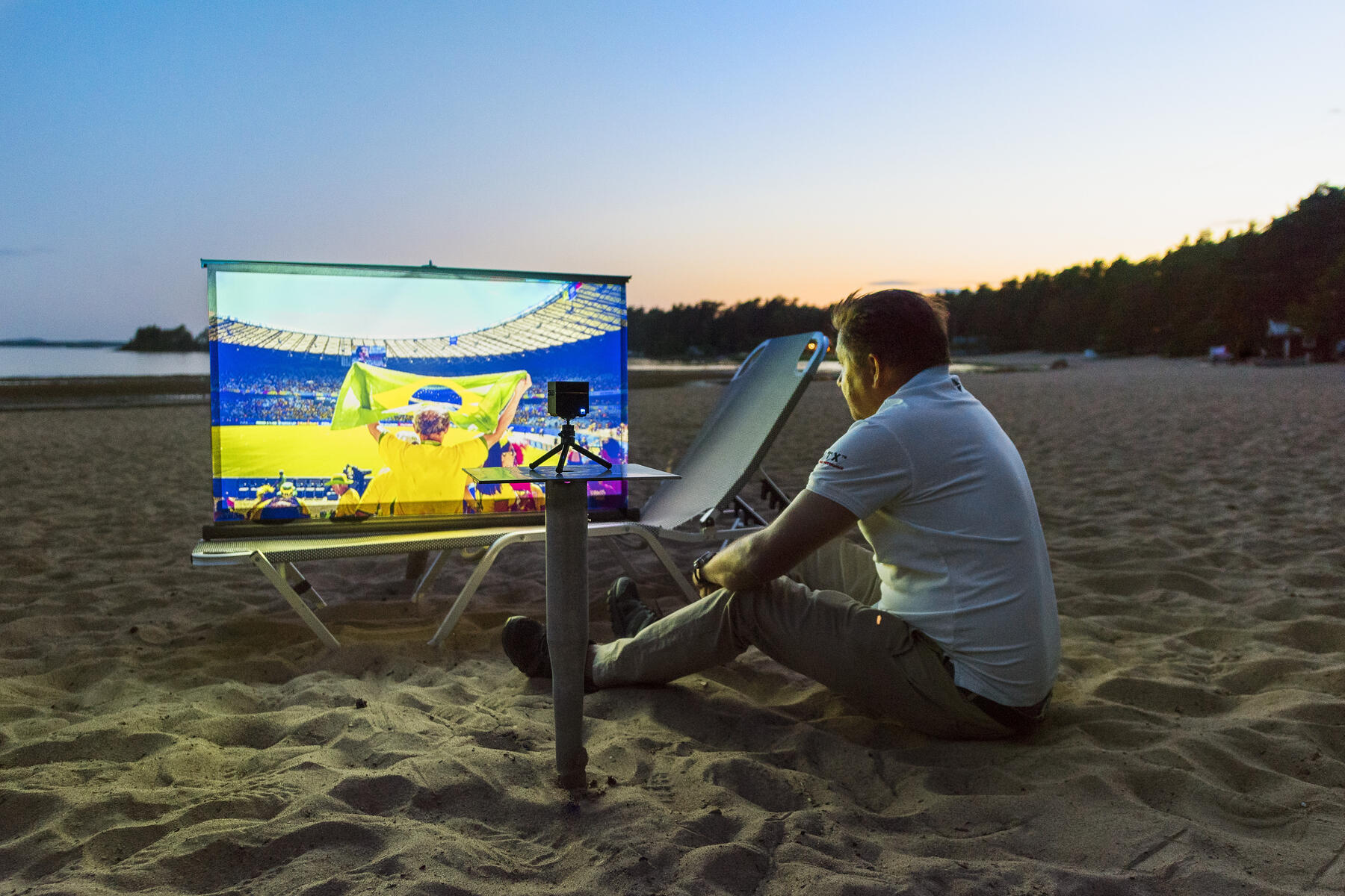 En infällbar projektorduk i 16:9 format som är framtagen för att återge LED-projektion på allra bästa sätt.