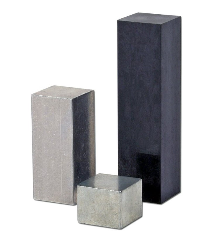 3 st rätblock med samma vikt (100g) men i olika material, järn, aluminium och plast. Genom att mäta och väga de olika rätblocken kan man bestämma deras densitet, samtidigt ger rätblocken en känsla för att samma massa kan ha olika volym.