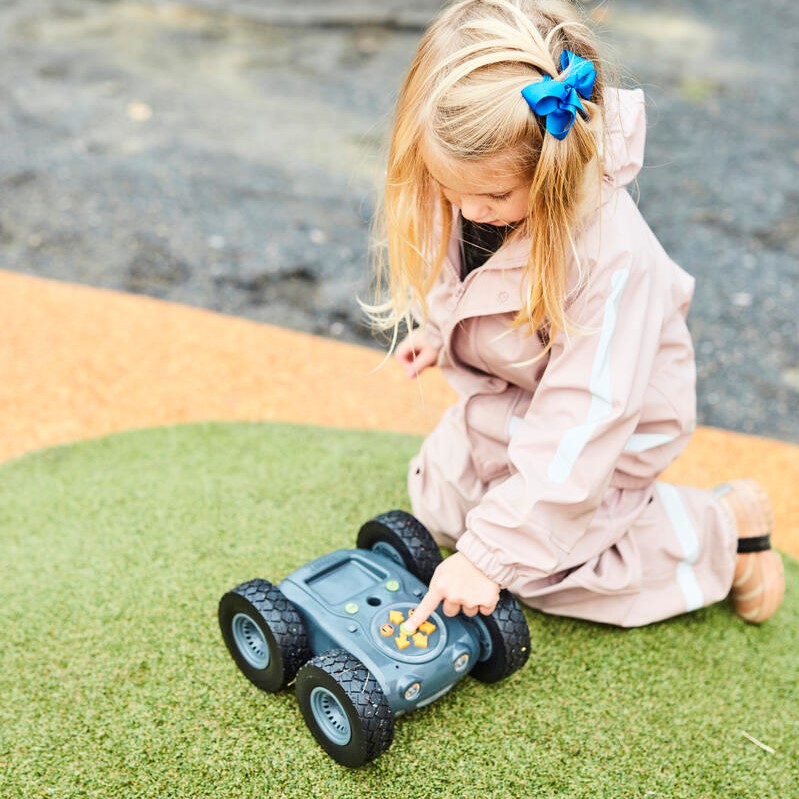 Programmeras med knappar som sitter ovanpå, eller från surfplatta/dator. Är även kompatibel med Tactile Reader. Uppladdningsbart batteri via medskickad kabel (USB-A). Kompatibel med Android (min 5.0) och iPhone (min iOS 8.0). Från 3 år.