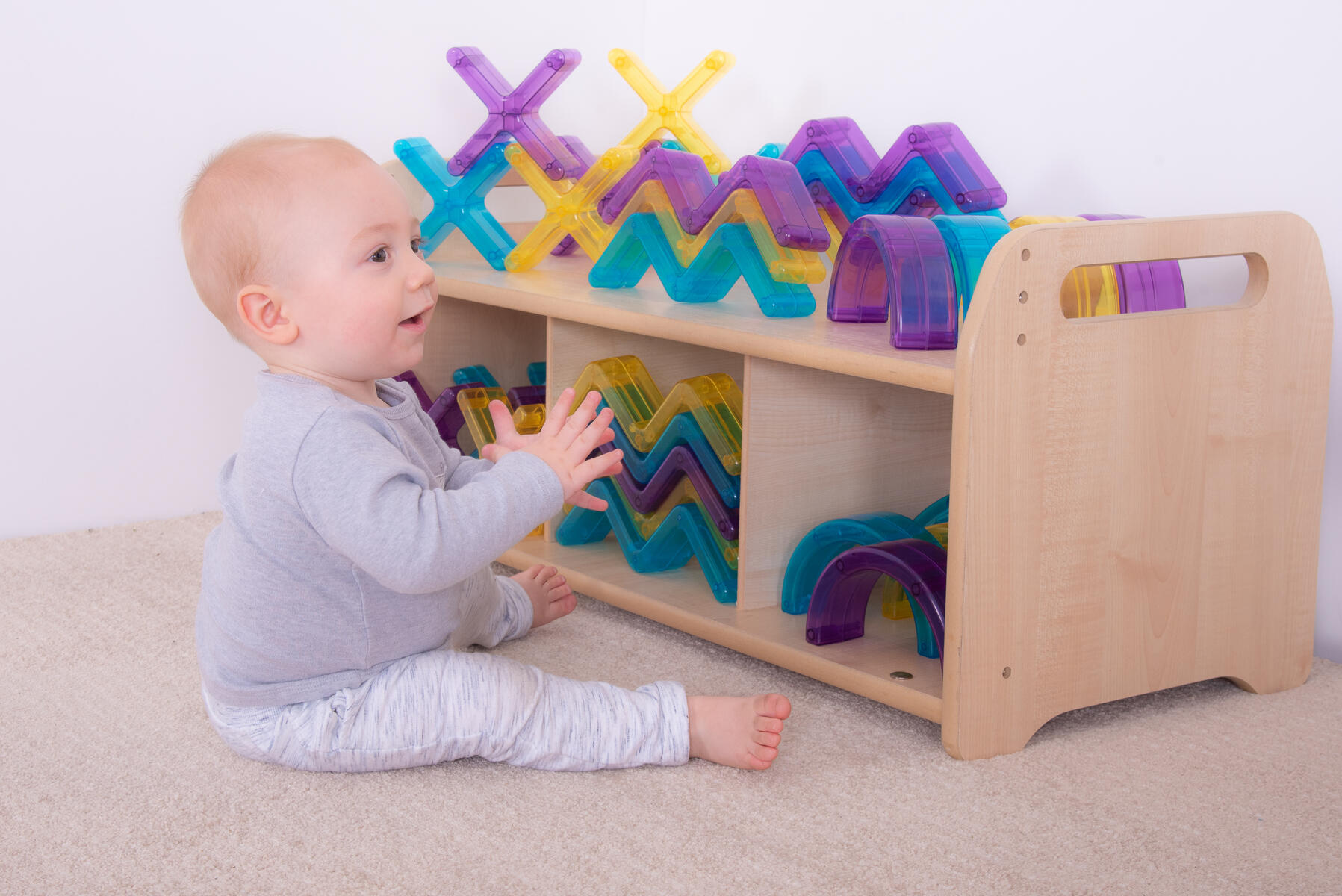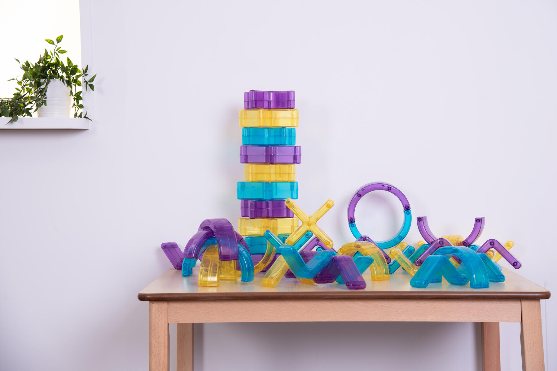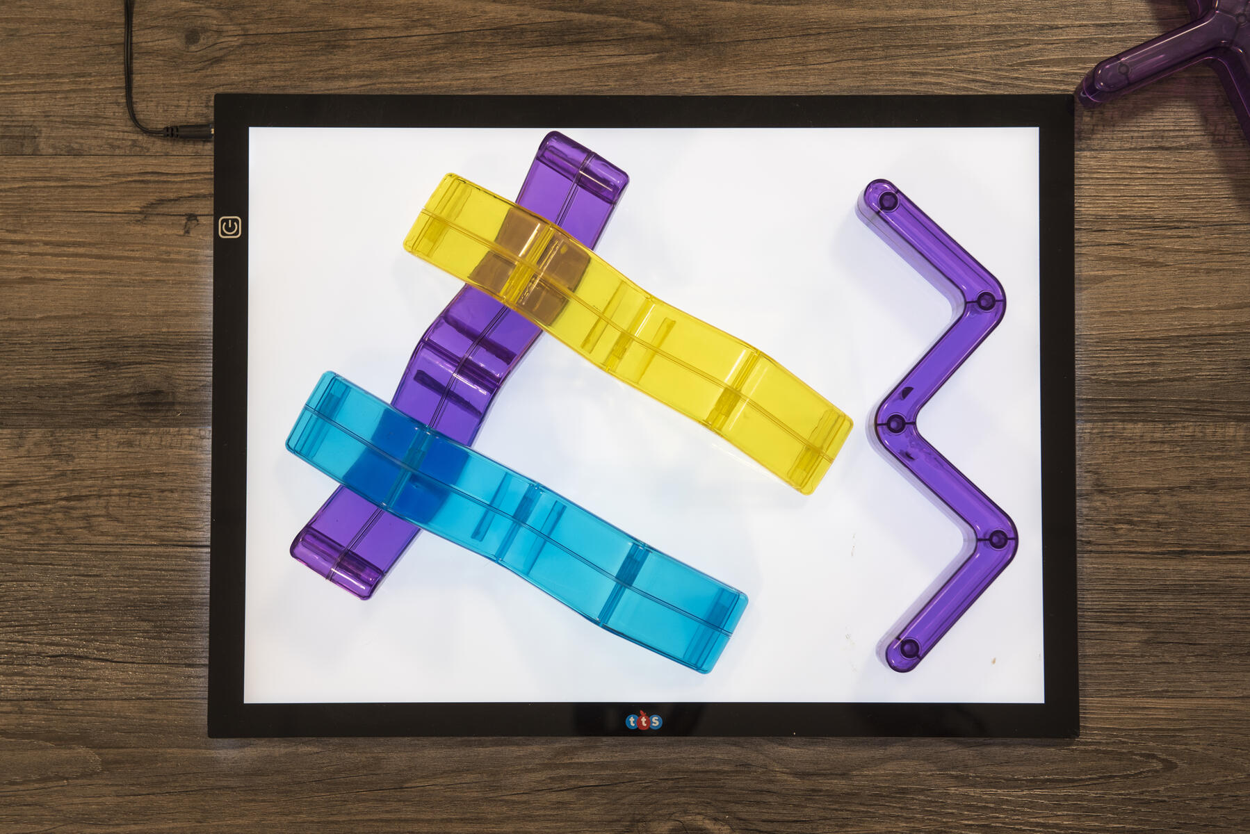 Transparenta färgade vågor som kan användas att bygga, balansera, göra mönster med. Lägg på ljusbord eller använd med ficklampor eller projektor för att lysa igenom.