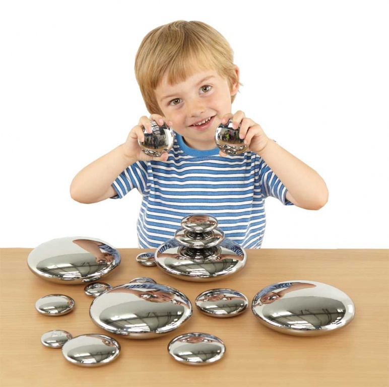 Bygg, sortera, få dem att snurra eller spegla dig i den blanka ytan.