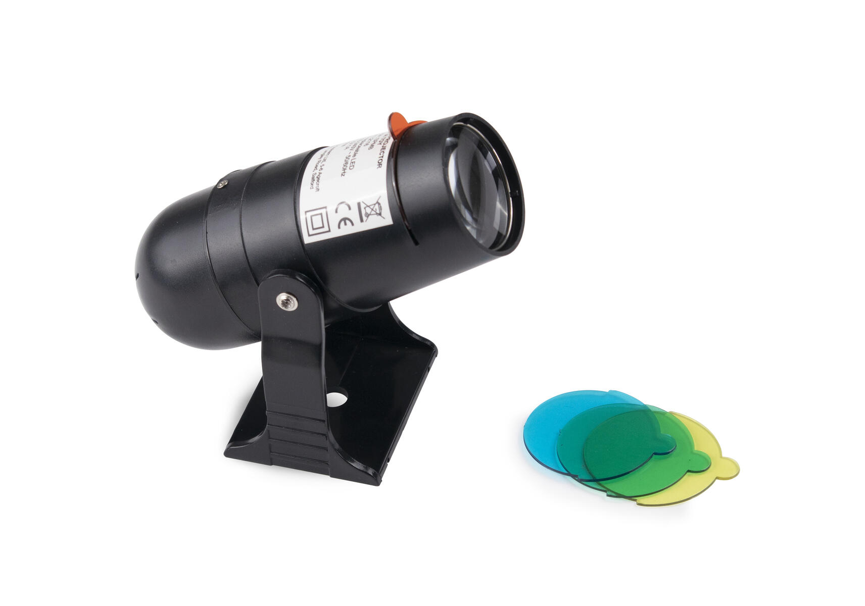 Med fyra färgade skivor (röd, grön, gul och blå) och strömsladd.