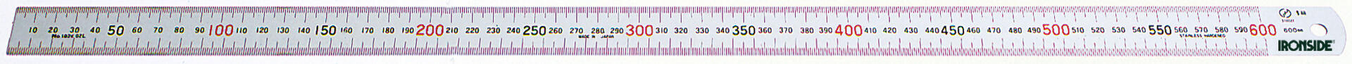 Stål- och textillinjal av rostfritt bandstål. Med mattförkromad yta för bländfri avläsning. Graderad i cm/mm i över- och underkant. Omräkningstabell på baksidan. Längd: 60cm.