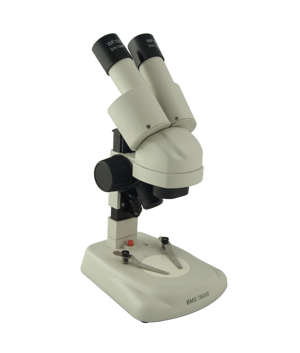 Batteridrivet stereomikroskop lämpligt för låg och mellanstadiet.