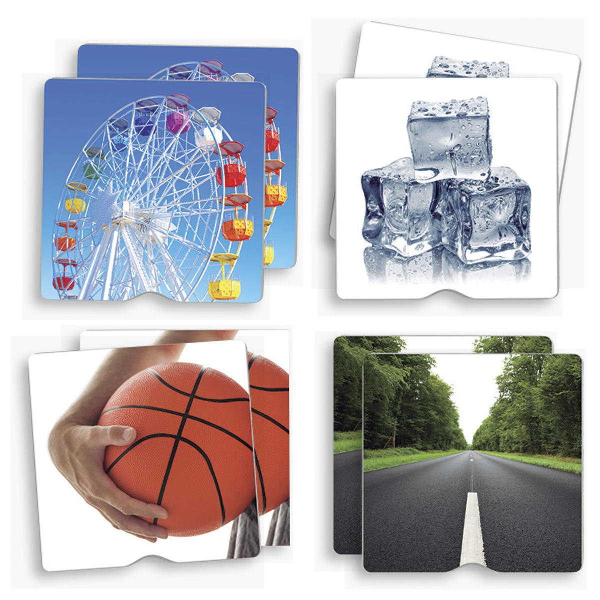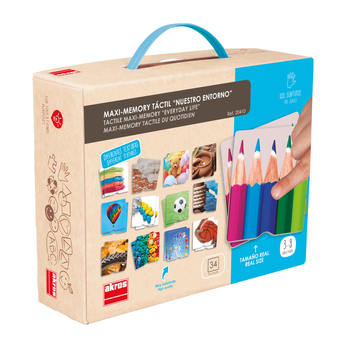 Ett taktilt memo med olika textur på fotografier av vardagsföremål. Kan spelas som ett klassiskt memory där man utforskar de taktila ytorna, eller genom att med ögonbindel försöka matcha paren.