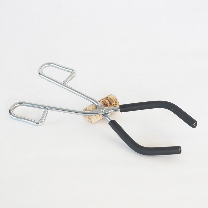 Tång för att hantera bägare, cylindrar eller andra föremål. Längd ca 255 mm och greppvidd c:a 40-130 mm.