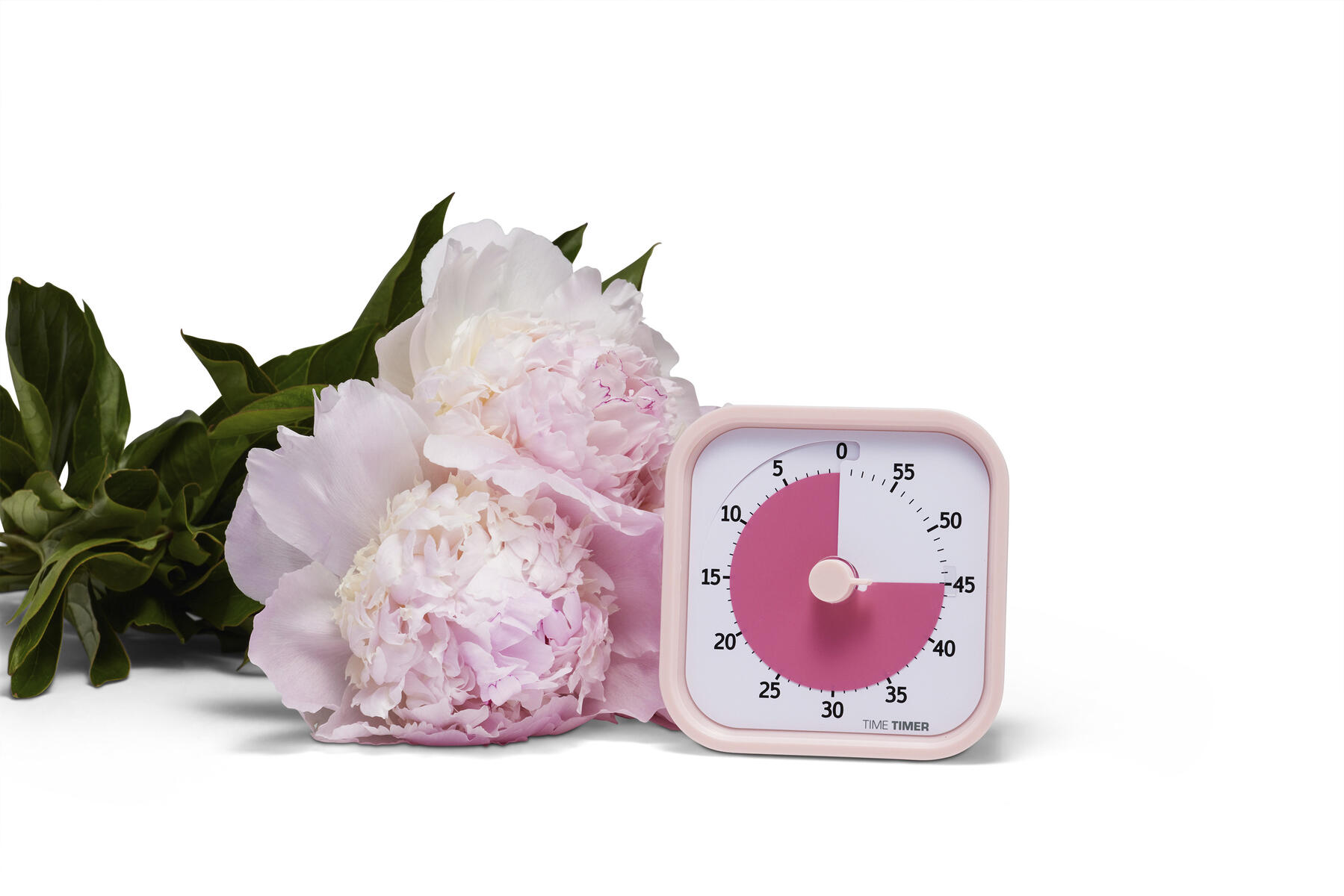 En mycket smart och konkret klocka som tydligt visar hur lång tid man har på sig, eller hur lång tid det är kvar. Ställ in det röda fältet på önskad tid, t.ex. 30 min, det röda fältet minskar sedan i klockans riktning. Inställningsbar 0–60 min. På- och avstängningsknapp för ljudsignal. Perfekt att använda i en mindre grupp, vid datorn, eller när man vill utföra olika uppgifter på viss tid. Mått: 9×9 cm. 1 st AA-batteri krävs, ingår ej. Av PC-plast samt silikon. Ljudlös.