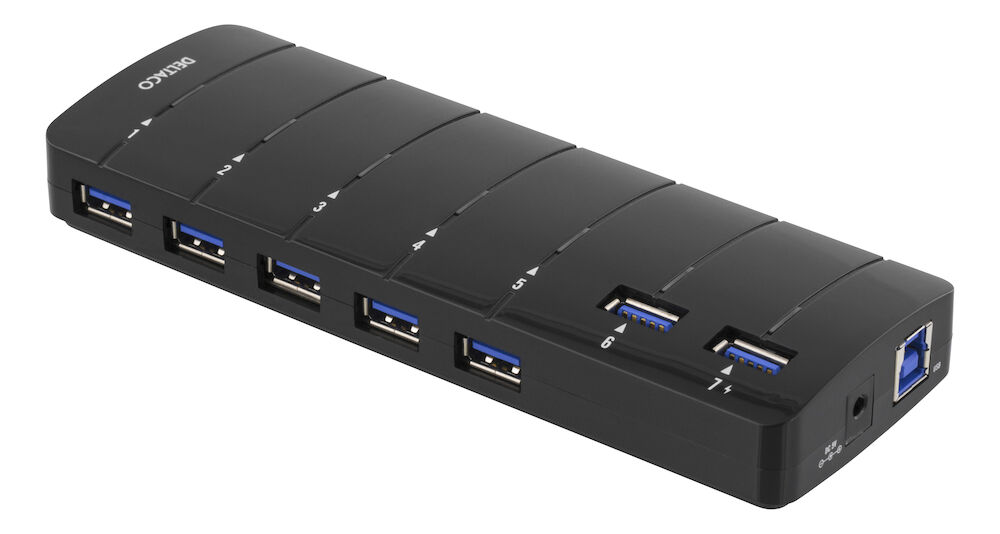 USB 3.0-hubb, 7xTyp A hona, nätadapter medföljer, svart. Används för laddning...