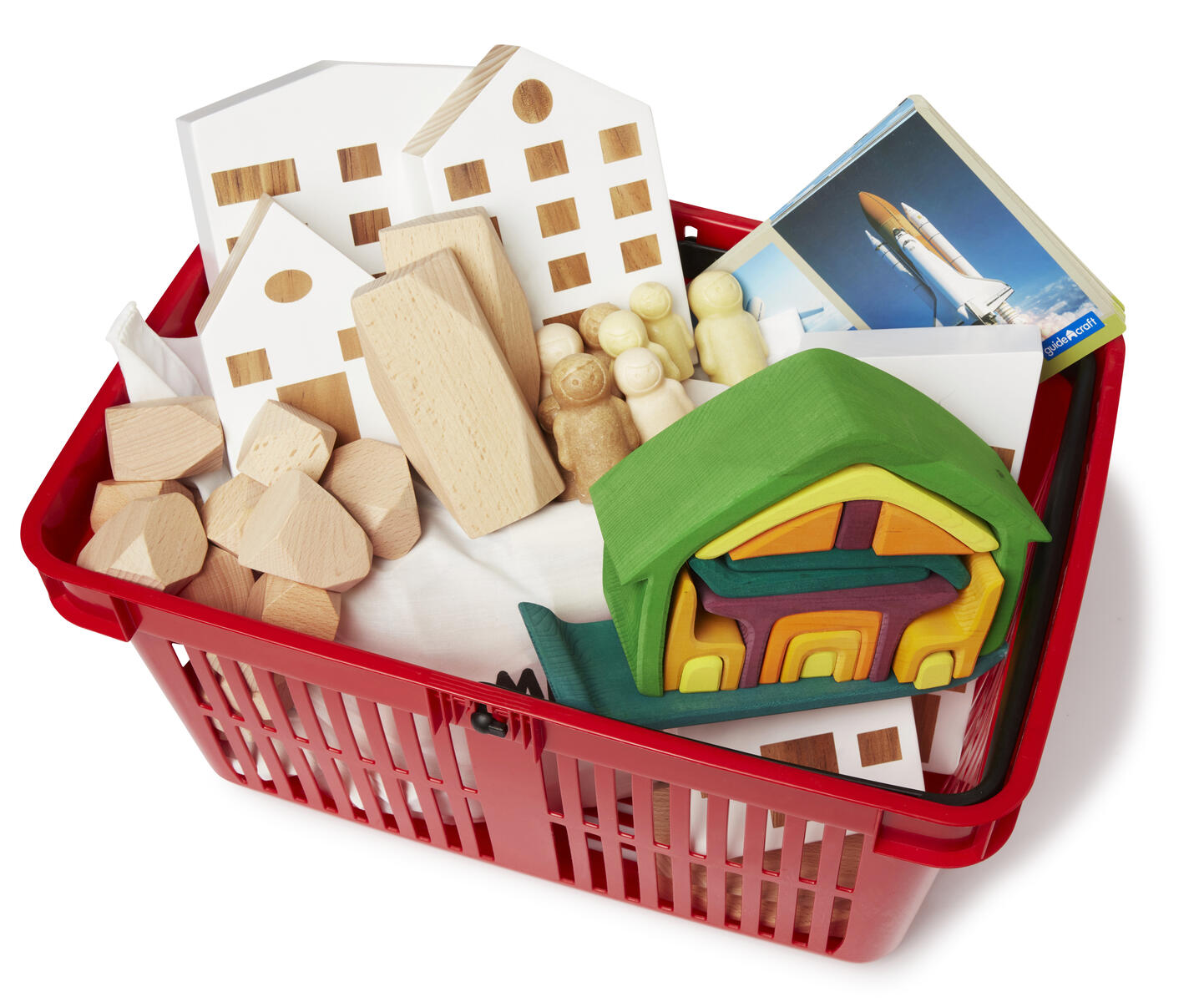 Ett paket som hjälper till att flytta ut verksamheten. Framtaget tillsammans med en pedagog. Innehåller: 124579-12 Förvaringskorg 27 L Röd, 118991 Färgade byggklossar, stor sats, 15168 GRIMM’S regnbåge mellan, 12055 Småstaden 20 st, 15681 Oregelbundna flintastenar 20 st och 117740 Småfolk 9 st . Förflytta korgen enkelt med hjälp av vår vagn 124580
